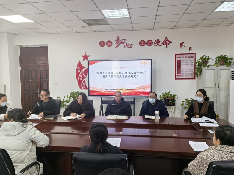 制药工程学院党总支开展“知敬畏存戒律守底线,廉洁从业守初心”主题党日暨春节前廉洁教育集中谈话活动