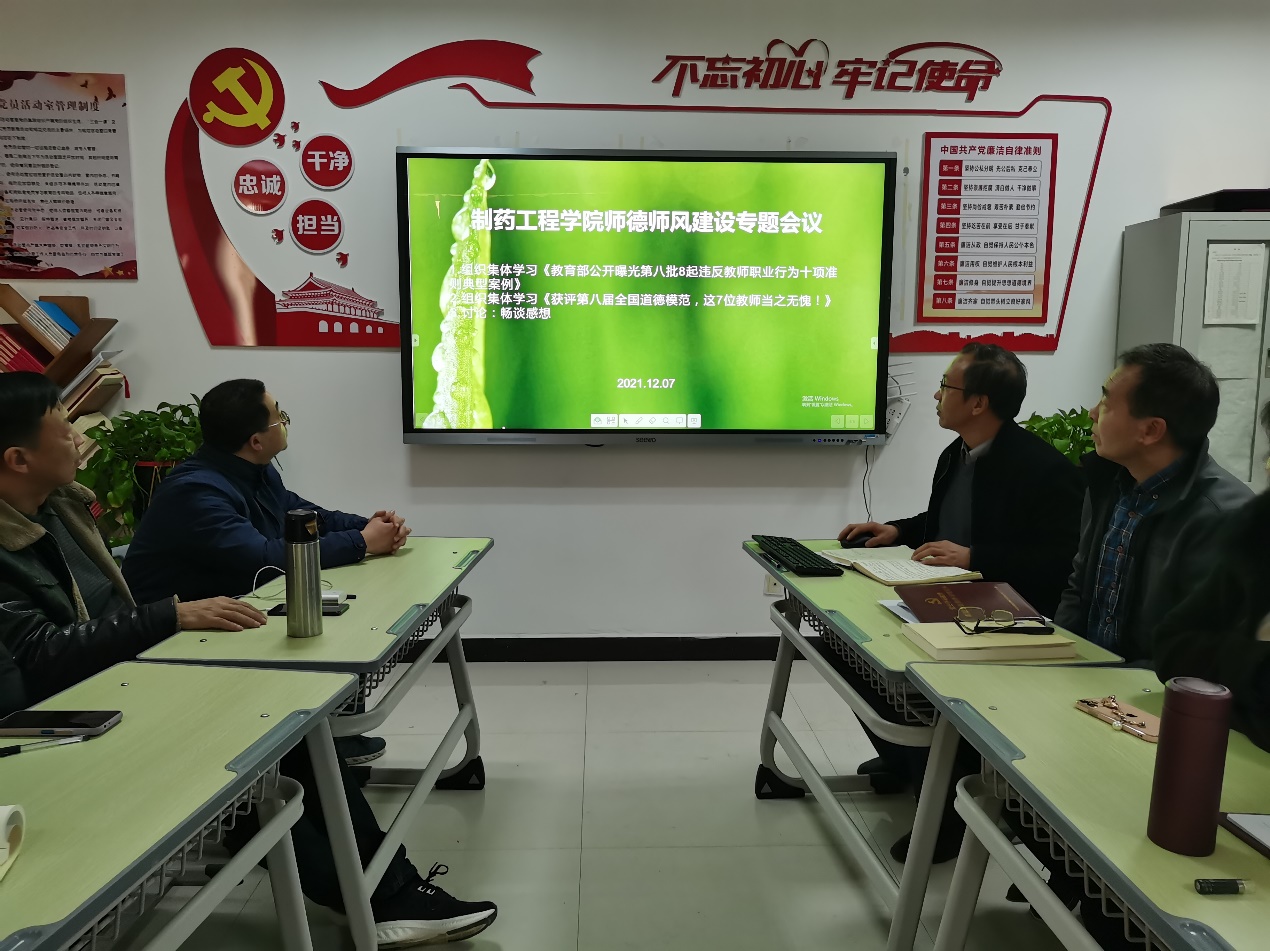 通过本次会议,制药工程学院教师增强了教书育人的使命感、责任感,筑牢了师风师德底线,进一步规范了职业行为。老师们表示要以“四有好老师”为标准,以优良的师德师风带动教风、学风转变,促进学院各项教学工作的发展。