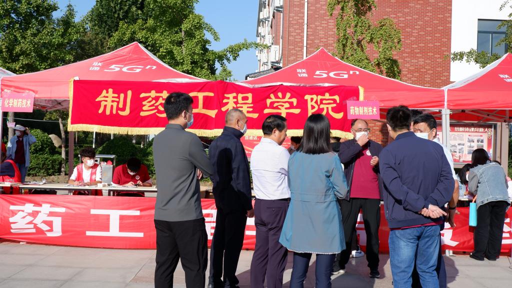 在开封校区南院迎新场地,魏新华一行先后查看了新生报到通道、报到流程设置、新生辅导员和班主任配备情况及疫情防控工作安排等情况,由制药工程学院院长吕玮介绍了学院的专业情况、设置情况、专业发展、学生管理情况