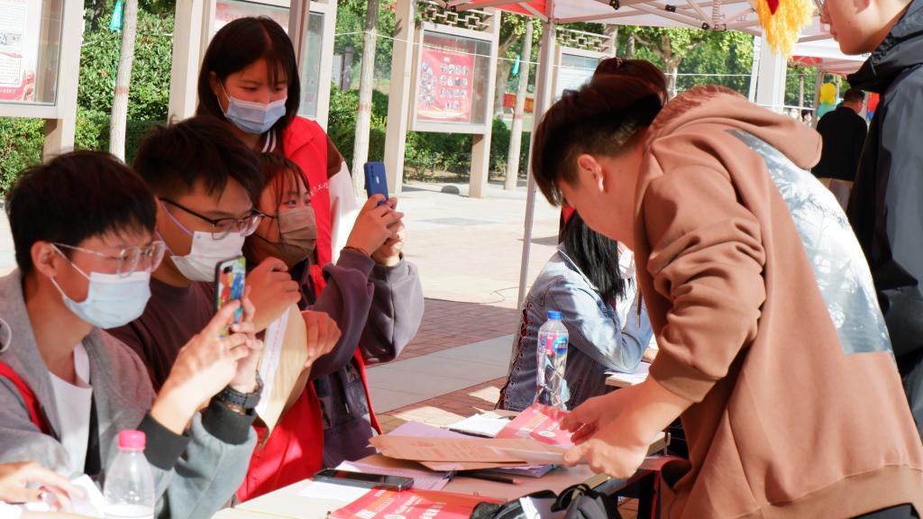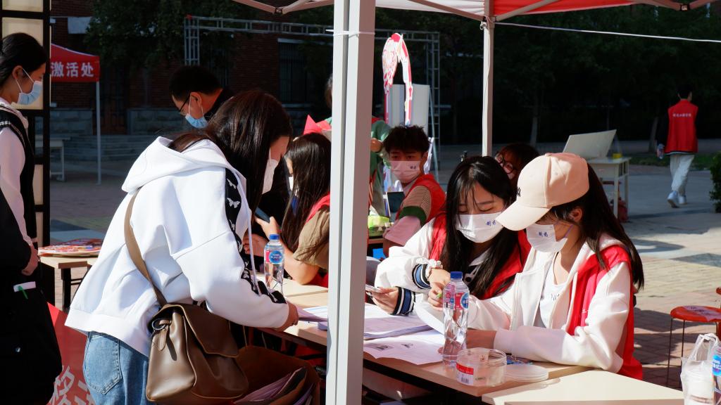 制药工程学院书记窦传斌、副书记白小茗为新生报道精心设计了地标打卡点,为大家送上学生自己制作的奶片,受到一致好评。