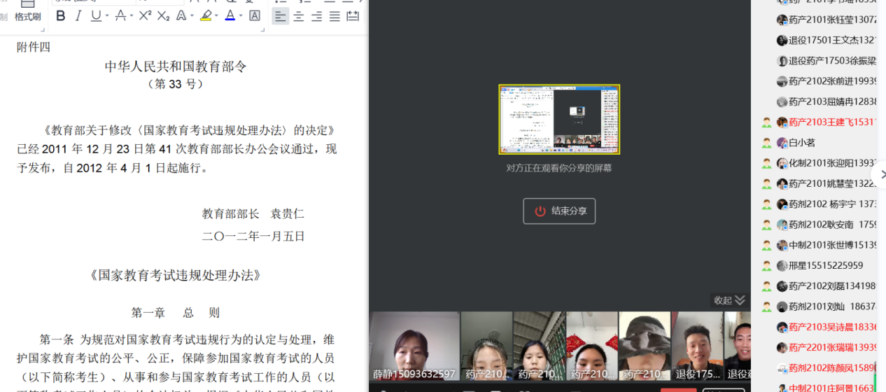 2024年专升本考试临近,为做好专升本考生考前相关工作,进一步端正考风、严肃考纪,引导考生树立诚信考试的正确价值观,制药工程学院于2024年3月12-3月16日之间召开线上专升本考试诚信教育主题班会,会议由制药工程学院专升本负责人薛静主持,各班专升本考生积极参会。