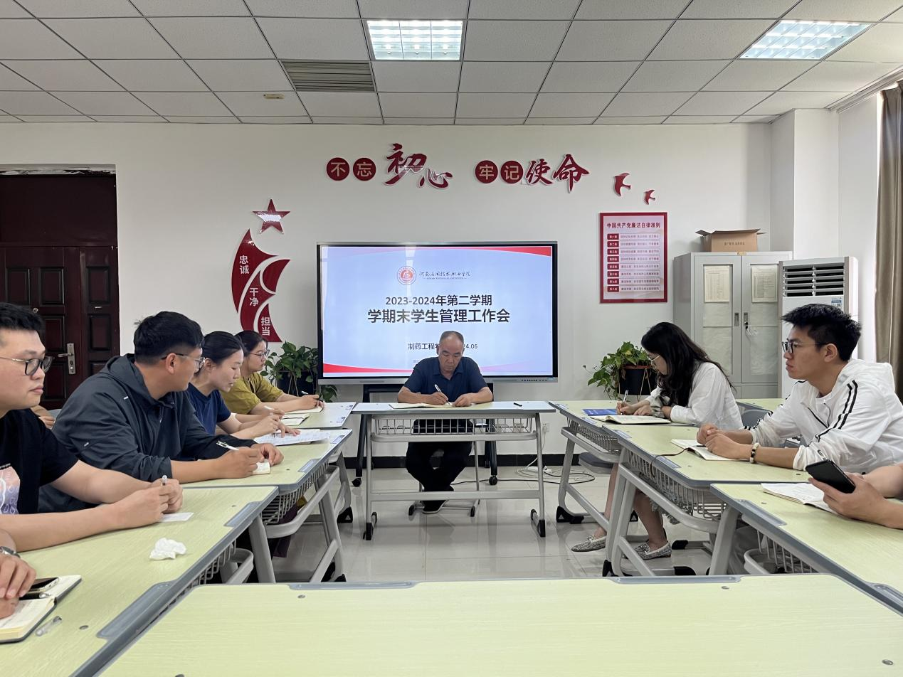 为落实落细学生期末安全教育和日常管理工作,6月3日下午,制药工程学院在办公楼301会议室召开了2023—2024年第二学期学期末学生管理工作会议。制药工程学院全体辅导员参加会议,会议由制药工程学院党总支副书记白小茗主持。
