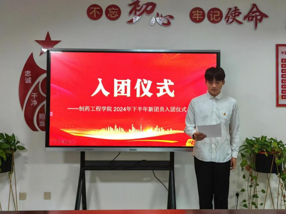 团聚青春新力量,挺膺担当向未来。为加强广大团员青年坚定不移听党话、跟党走,同时推动我院团组织建设,切实增强团员青年先进性、光荣感和责任感,11月14日下午在行政楼301举办了制药工程学院2024年下半年新团员入团仪式。制药工程学院党总支副书记白小茗、团总支书记曹璐、辅导员邢星、代东炎、王芮婷参加本次入团仪式。