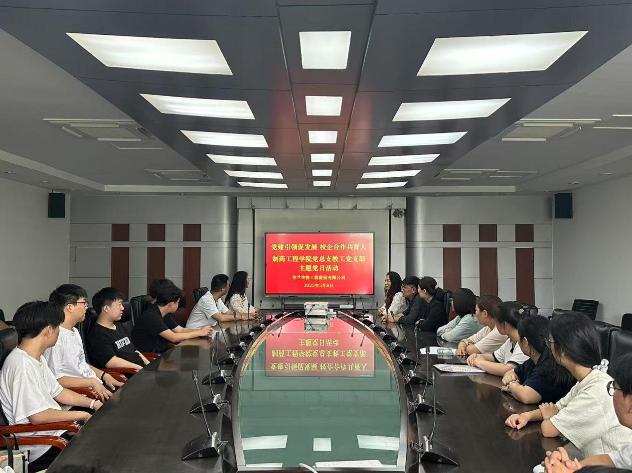 为加强基层党组织建设,充分发挥党建引领、校企合作、共建共创的示范作用,2025年5月8日,制药工程学院党总支教工党支部党员以及学生入党积极分子代表赴新乡市华兰生物工程股份有限公司开展以“党建引领促发展、校企合作共育人”为主题的党日活动。