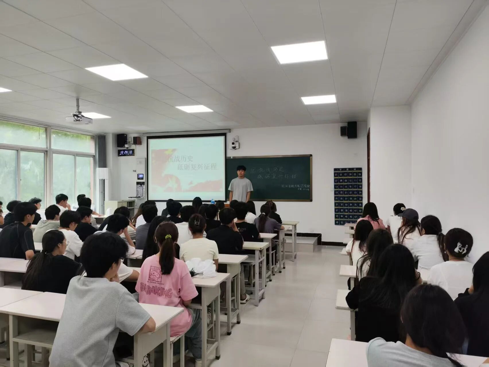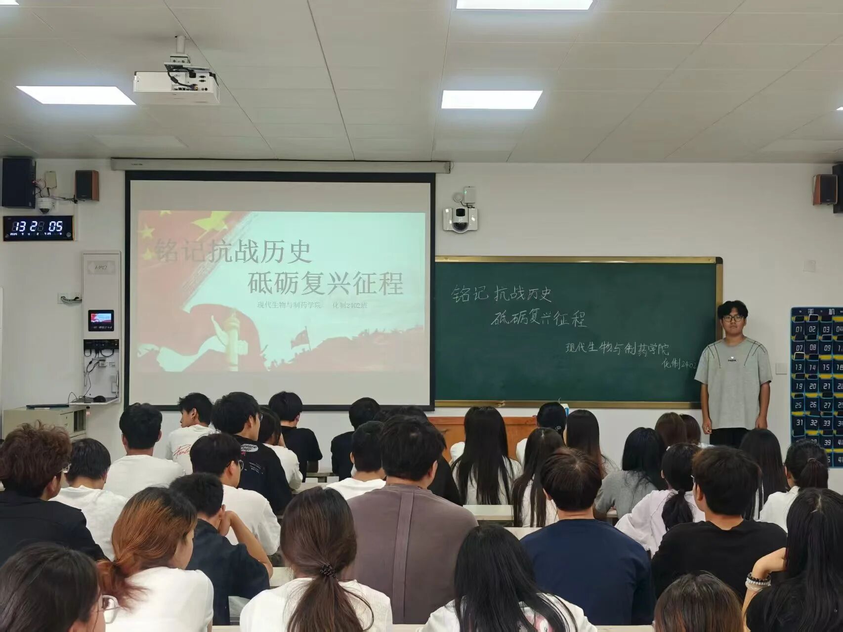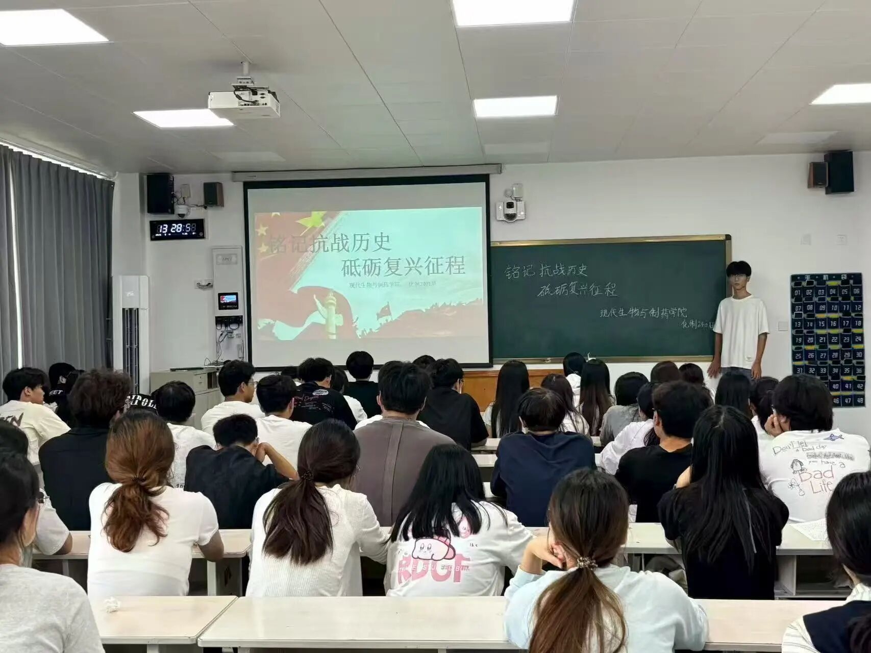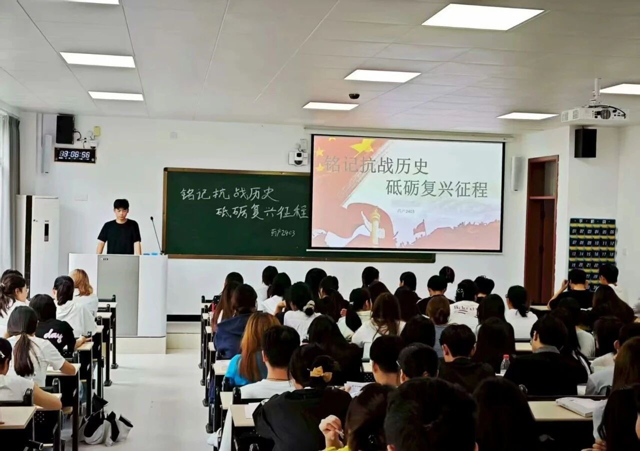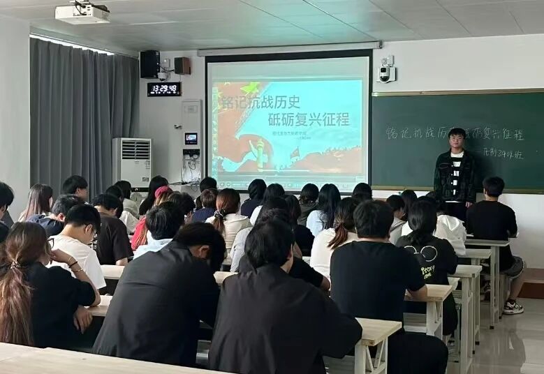 活动伊始,各班团支书组织同学们观看历史影像资料,学习抗战时期的重大事件与英雄事迹。通过详实的史料展示,同学们深入了解了中华民族抗战的艰辛历程,感受到先辈们为国捐躯的崇高精神。在交流环节,同学们积极发言,结合自身经历,探讨了新时代青年如何传承红色基因、担当时代使命。大家各抒己见,现场气氛热烈。