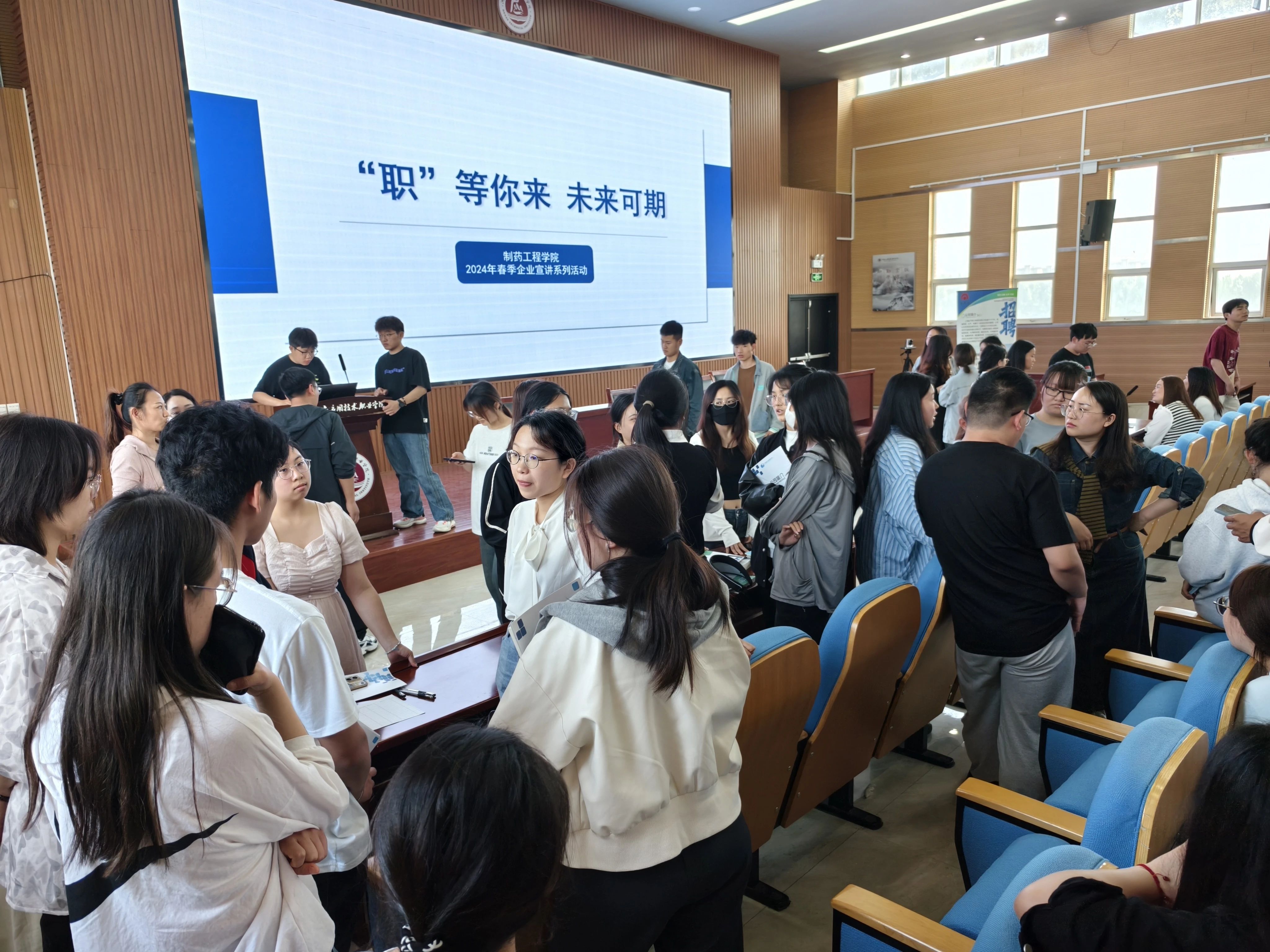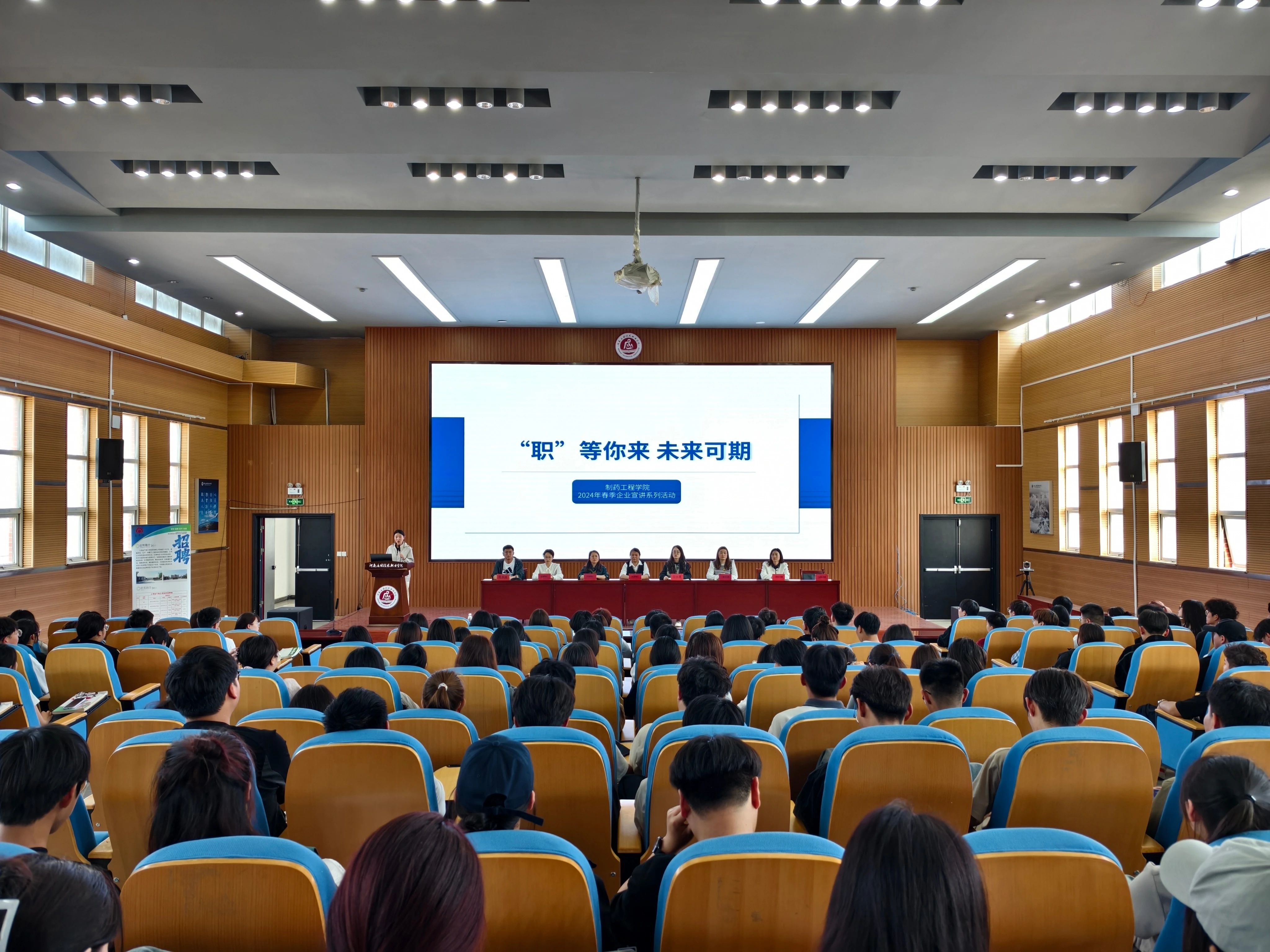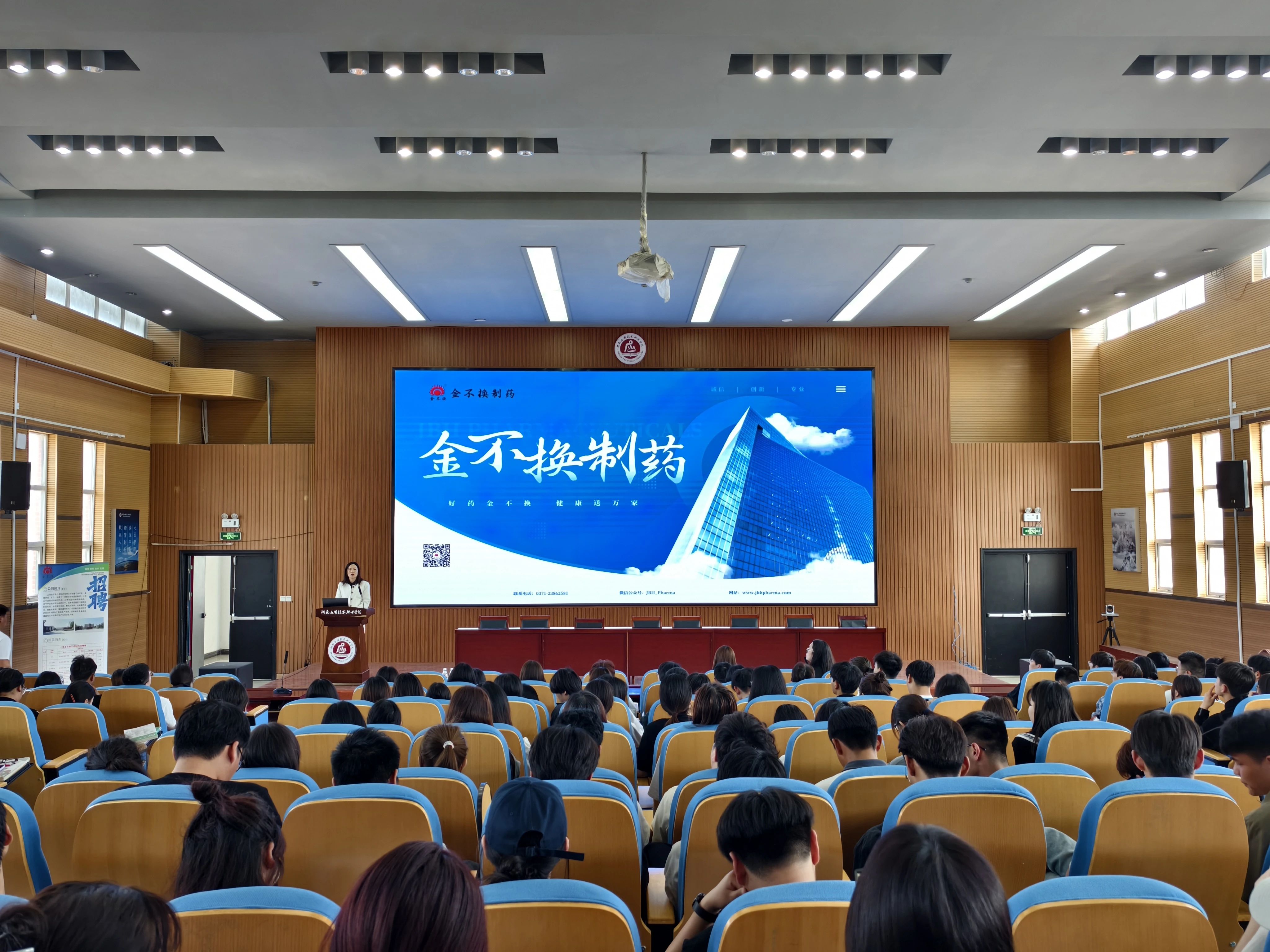 为贯彻落实党的二十大精神,拓宽我院毕业生就业渠道,把握优质就业岗位,切实落实推进就业相关工作,促进学院毕业生充分高质量就业,2024年4月12日制药工程学院邀请上海金不换兰考制药有限公司、开封明仁药业有限公司开展专场宣讲活动。上海金不换兰考制药有限公司人事经理蓝雨、开封明仁药业有限公司生产副总刘华分别带队莅临我院开展校招宣讲,学院党总支副书记白小茗、就业专员邢星、辅导员代东炎及学院2025届200余名毕业生参加宣讲会,宣讲会由邢星主持。